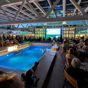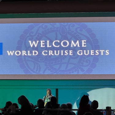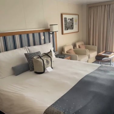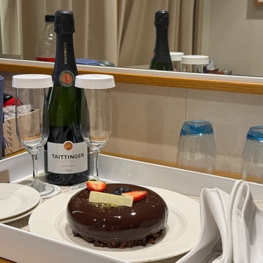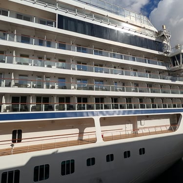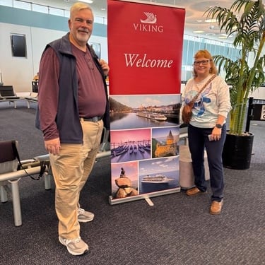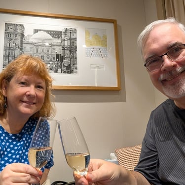 We checked out of our hotel and took an Uber to the port. We arrived at 11:17am and before 11:30am we were on board, having a glass of sparkling wine while watching a safety video! We then began reacquainting ourselves with the ship. We chatted with some people we've met so far and made some dinner reservations for specialty dining. We also stopped at guest services to find out about how to stow our medications and signed up for a cooking class later this week. We have some medications that require refrigeration and at 5pm Tom was escorted to the medical center where they will keep them for us throughout the trip. While having lunch in the World Cafe at 1:30pm they announced that our rooms were ready and we spent over an hour unpacking and organizing. We were quite pleased that even though we brought a lot, we managed to find a place for everything. We met our cabin steward Yudi. He and Henry will be assisting us. Yudi has already made a very positive impression on us, getting us a few items like more hangers immediately. At 5:15pm we went up to the pool deck for a few speeches and another glass of champagne to kick off this glorious voyage. We then dined in the "The Restaurant" and had a wonderful first dinner. Tom had the roasted carrot soup and Amy a ceasar salad for the first course and both enjoyed the Chicken Kiev for the main entree. We split a "new St. Honore" for desert which was quite playful and eye catching. The nice thing about meals on Viking is the portions are not large so over eating at "The Restaurant" is rarely a concern.