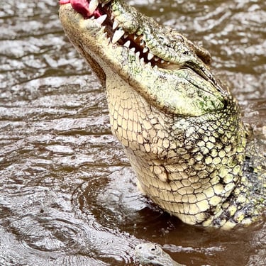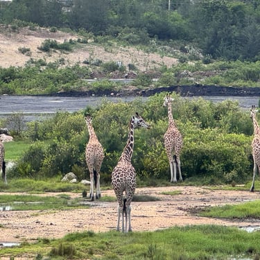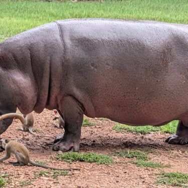 Next we headed to Haller Park. Haller Park is a remarkable story of regeneration. Born from the ruins of a cement quarry, it has transformed into a vibrant ecosystem teeming with life — giraffes, hippos, reptiles, monkeys, butterflies, and more. We were a little late and missed the giraffe feeding but were able to see them in the distance. We then headed to the crocodile feeding that showed a number of crocs competing for meat. After that we headed to the hippo area where we watched a large 40 year old hippo enjoy an afternoon snack while several monkeys tried to get in on the action, but were very careful not to anger the hippo. On the walk back to our bus we saw a large tortoise that you could interact with. It was a hot afternoon and we were happy to get back to the bus and AC.