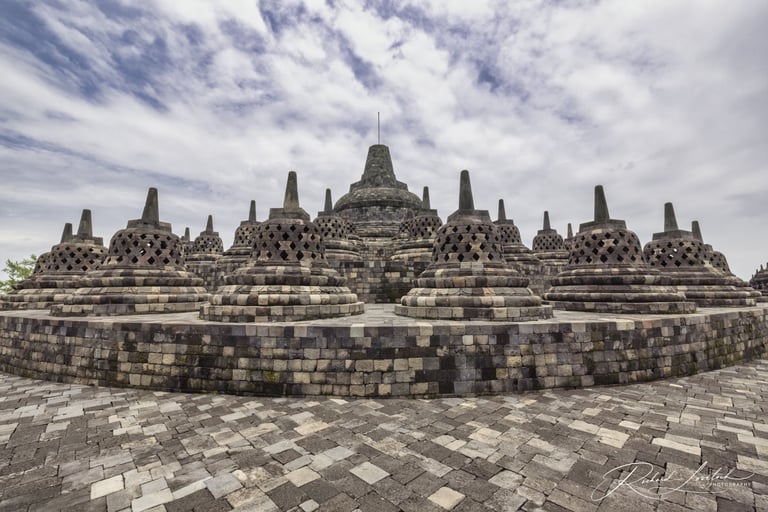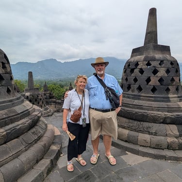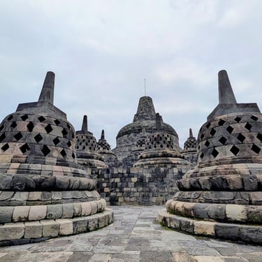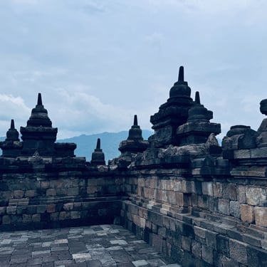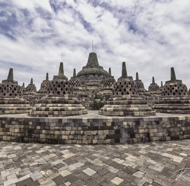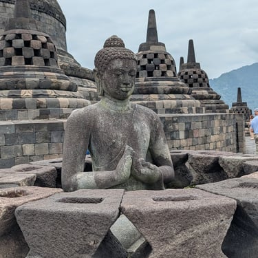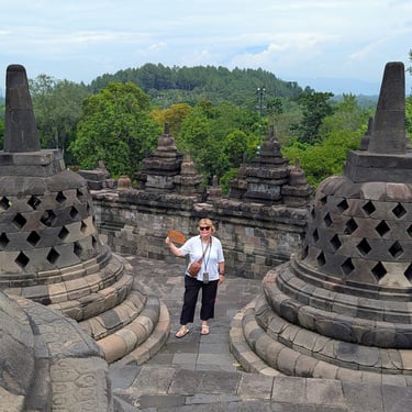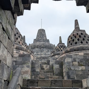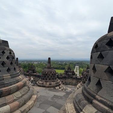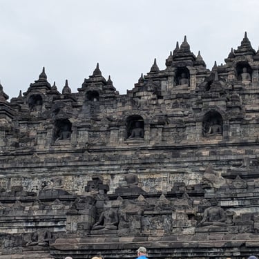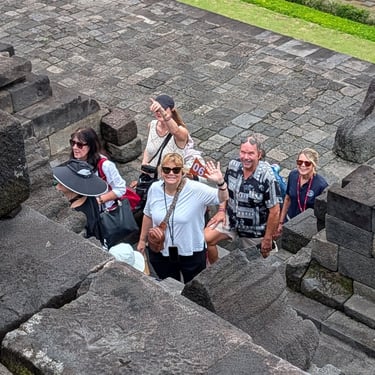 Today was a 9 hour excursion to Borobudur, the world's largest 9th-century Mahayana Buddhist temple, located in Magelang, Central Java, Indonesia. Built by the Sailendra Dynasty in a stepped, mandala-style pyramid, it features over 2,500 relief panels and 504 Buddha statues. It serves as a major pilgrimage site and a UNESCO World Heritage site. It was covered in jungle growth and volcanic ash for several centuries before being rediscovered in 1814.