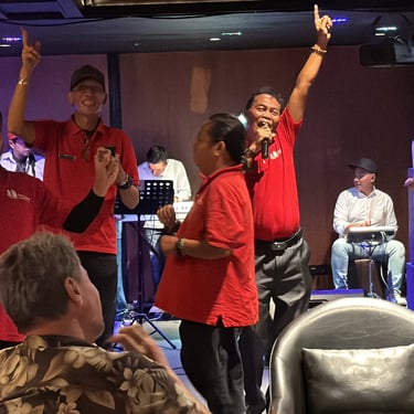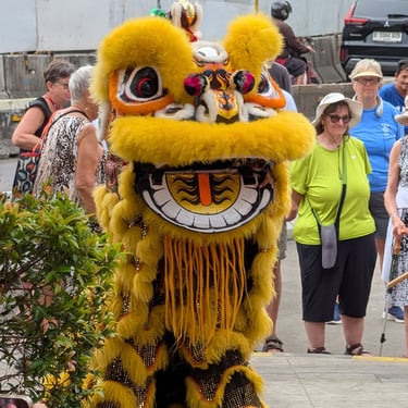 The morning came early, but we were troopers and headed out on our tour. We arrived to see a traditional lion dance with music. We then proceeded to tour the local wet market (down a small alley that was crowded with people and scooters). Spices, fruits, vegetable, fresh fish and meats (although we didn't see any means of refrigeration). We then visited a Chinese temple and released birds at the end to earn good karma and let go of past troubles. After walking back through the market, we headed to the oldest Chinese pharmacy. There, medicines are mixed to order. They have a wooden cabinet behind the counter that contains all of the natural ingredients that they use. Very interesting. Next we went to a tea house for a rest, tea and snacks. After our break we then headed to old Jakarta with all of its old Dutch influence. They even built a riverfront like in Amsterdam. We visited a puppet museum where old puppets that were used to tell their history. After that we returned to our ship and a well deserved nap!
