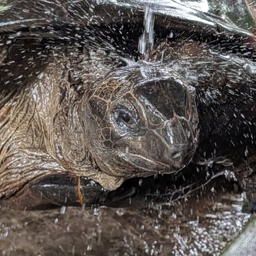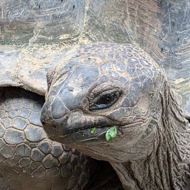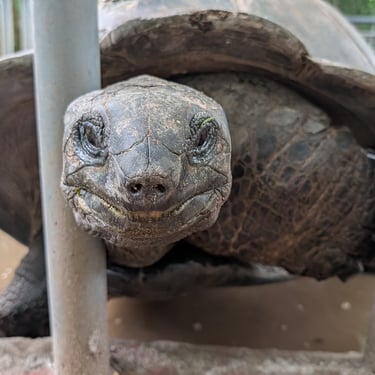 Today, Viking offered two included excursions (you had to pick one), so we opted for the “Scenic Island of Mahé.” Our tour set out in the morning under mostly cloudy skies, with occasional light rain. Even at around 84°F, the heat and humidity felt intense. We boarded a small bus and made our way into Victoria for a brief stroll through the town center. It’s charmingly compact and very walk-able, with one of its standout sights being a miniature version of Big Ben, built in 1903 to honor Queen Victoria after her passing in 1901. From there, we drove to Berjaya, a resort at Beau Vallon Bay on the island’s northeastern coast. We had about 50 minutes there; just enough time to grab a soda, stroll along the beach and dip our toes in the Indian Ocean. The alternative excursion would have spent several hours at this same beach, but given the weather and the fact that it didn’t quite compare to the resort experience we’d had in the Maldives, we were glad we chose the broader island tour. While at the resort, we also came across a small enclosure with a handful of tortoises. They were easy to approach and surprisingly gentle, making for a fun and unexpected interaction.